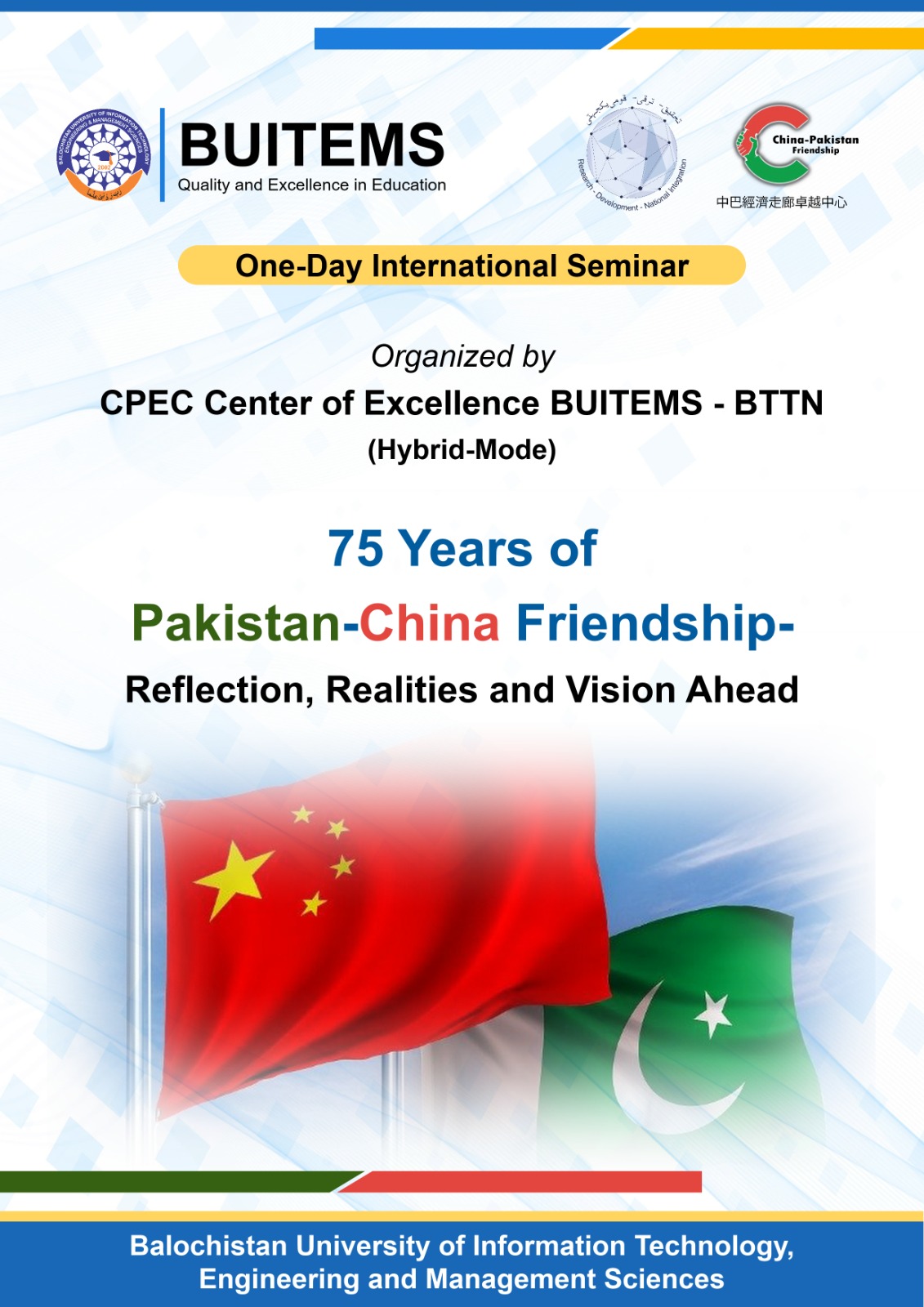 The foundations of BUITEMS are laid on the sound principles of excellence in academic standards, equity, equality, sincerity of purpose, and the vision for the future.